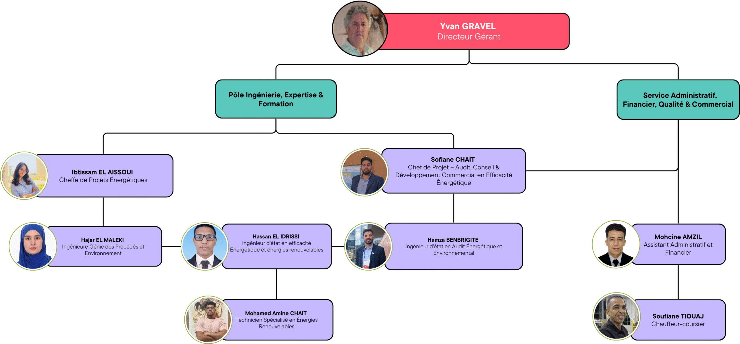 M. Yvan Gravel, fondateur-gérant de FRAQUEMAR, possède une expérience de plus de 35 ans dans le domaine de l’efficacité énergétique. Il a occupé des postes de responsabilité variés et stratégiques tout au long de sa carrière. Il a été Directeur des départements « Audit et Gérance Énergétique » chez ADS Canada à Montréal, puis Chef d’équipe du Programme d’Efficacité Énergétique dans les Industries (PEEI) au Sénégal, dans le cadre du programme ESMAP – Banque Mondiale. Il a également œuvré en tant que Long Term Advisor pour le projet GEM (Gestion de l’Énergie au Maroc) financé par l’USAID, en menant des actions de sensibilisation, de formation et d’audits énergétiques et environnementaux. Par la suite, il a dirigé au Maroc le programme PFDSP (Fonds de Développement du Secteur Privé) financé par l’ACDI. M. Gravel a cofondé le bureau d’études Clean Tech avant d’en céder sa participation. Il a également été Chef de projet de la Mise à Niveau Énergie et Environnement de la Zone Industrielle de Sidi Bernoussi, un projet cofinancé par le FFEM et le GEF, pour le compte de l’Association Izdihar. En tant qu’expert reconnu, il a contribué auprès du PNUD aux Seconde, Troisième et Quatrième Communications Nationales sur les Changements Climatiques destinées à la CCNUCC. Enfin, il a été Chef de file et Directeur du Programme MEDTEST II de l’ONUDI, où il a accompagné 25 entreprises industrielles marocaines dans l’amélioration de leur performance énergétique et environnementale.